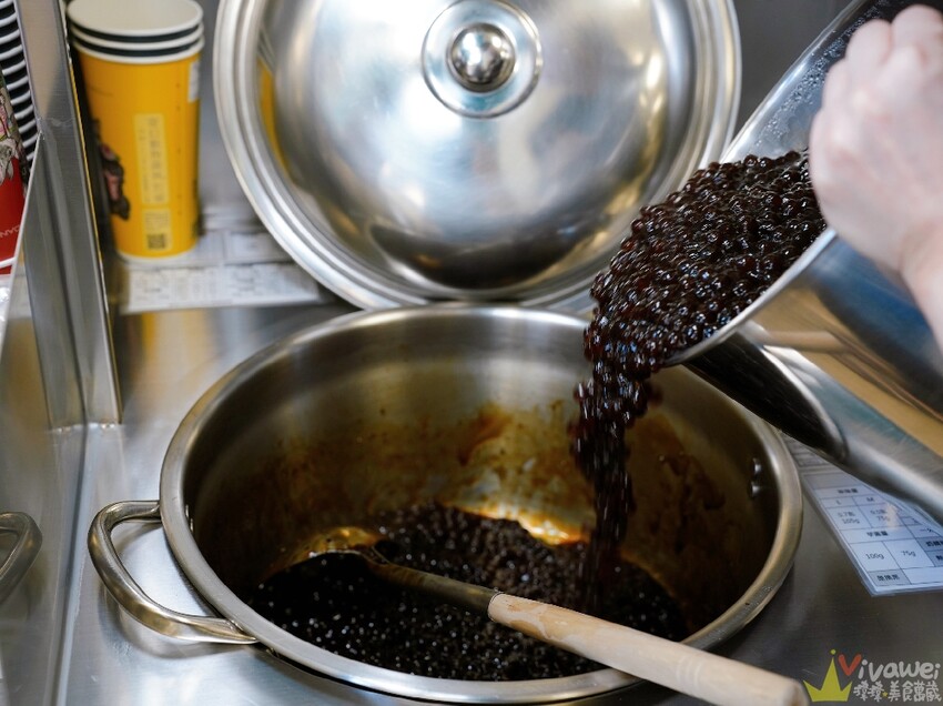▲這剛起鍋的黑糖蜜製珍珠也太誘人了吧!口感Q彈有嚼勁,很適合搭配奶茶類的飲品!