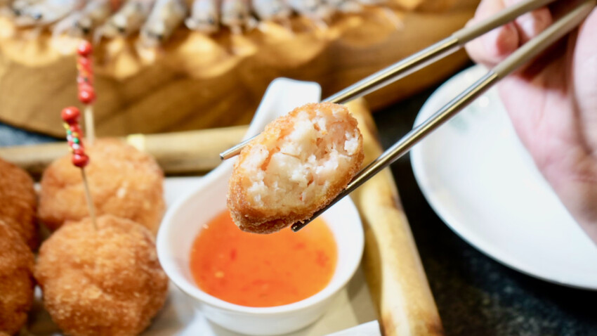 椰漿蝦丸 是泰滾很特別的品項,外面都吃不到,吃起來有椰子香氣的丸子,裡面真的可以吃到蝦子本人,Q彈口感又真材實料很美味!