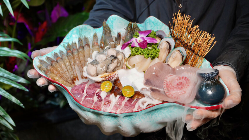 泰滾新品必點推薦「西班牙伊比利松阪豬」,特選高級西班牙伊比利豬肉,松阪豬入口非常驚艷,很少吃到這麼脆又超彈牙的豬肉,而且上桌竟然是一朵花朵的造型,很適合約會時來一份喔~