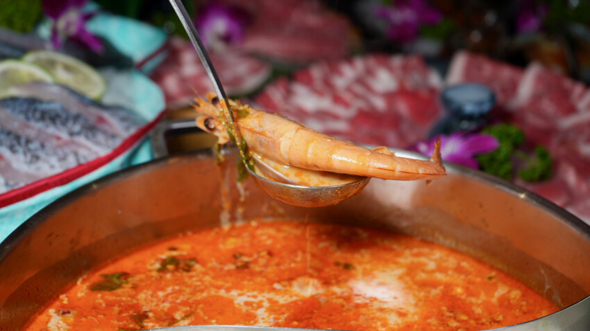 推薦喜歡吃泰式料理的人,泰滾有道地必點「酸辣生蝦」,還有不怕你吃的「泰泰蝦片續到家!」,不止吃到飽更會準備一包讓你帶回家繼續吃!這裡還有桃園店限定的「整隻新鮮鱸魚」,海鮮與冬蔭功湯真的是絕配呀!肉肉控吃鍋一定會很滿足,泰滾推出「超狂大肉盤」,狂犇三拼、三隻小豬一次可以吃到三種肉,太幸福了吧!
