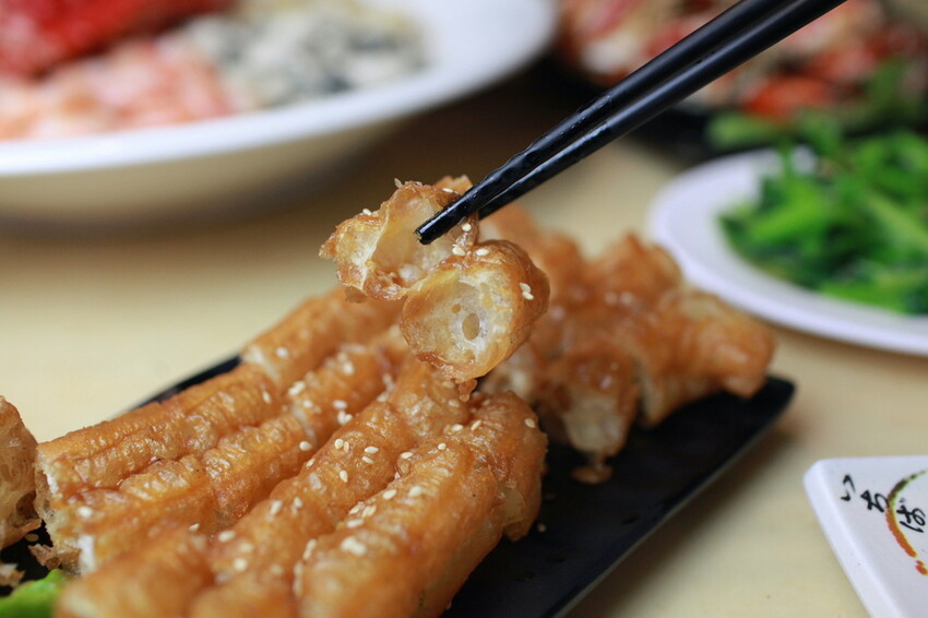 這道是老闆的創意料理,油條抹上醬汁經慢火烤到蓬鬆,油條微甜超酥脆且不油膩非常好吃