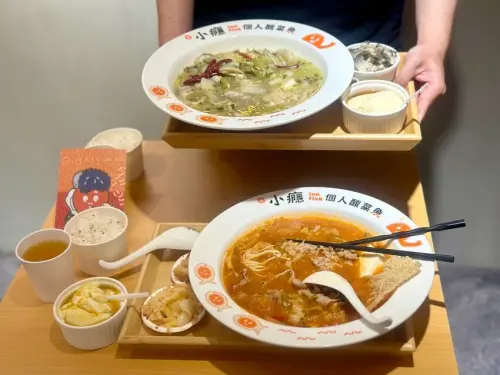 「赤初小酸菜魚」菜單酸菜魚選擇不少,主打果香酸菜魚、鹽滷豆花酸菜魚和檸檬青花椒魚,創意新奇,不吃魚肉也能換成牛肉或豬肉,還可依食量選擇肉量加價,菜單也有素食可以選擇。