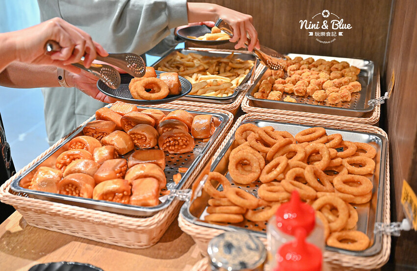 耀武羊威南屯益豐帝王店有提供炸物,不定時更換品項,這天吃到了薯條、洋蔥圈、雞米花、煉乳饅頭,以往我為了避免太飽都會避開夾炸銀絲卷,但是沒想到耀武羊威的炸銀絲卷相當酥爽脆口,淋上煉乳好好吃喔~雞米花裡面有肉塊那種,可不是只有厚厚麵粉炸衣,也很不錯