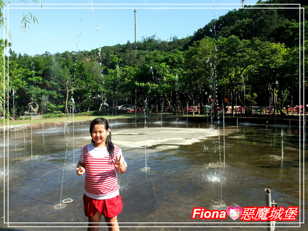 吃飽喝足後,Fiona到戲水區與其他小朋友一起玩水~~