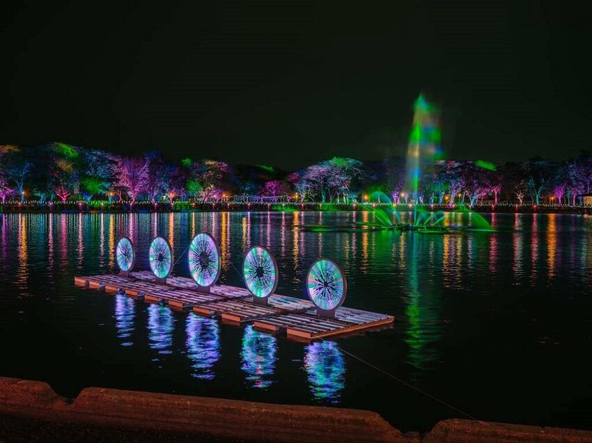共計9件主題亮點作品、環湖光環境以及大型水上噴泉,將透過湖中寬達15公尺的「光之眼」作品,融合天鵝光雕投影、電子音樂,讓參觀民眾有視覺與聽覺的雙重享受!