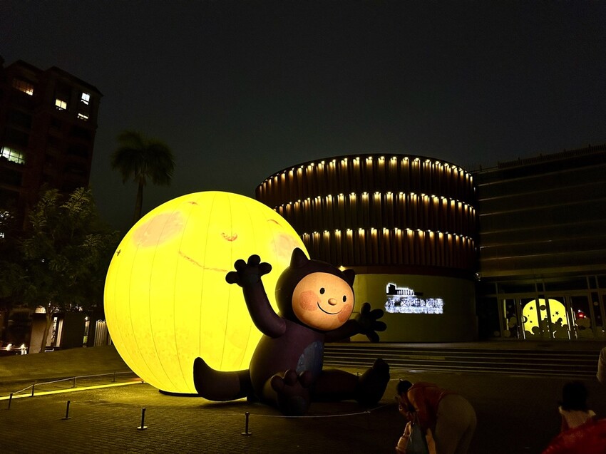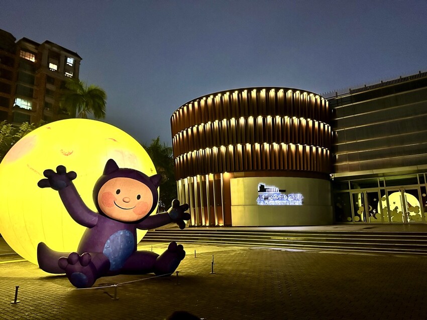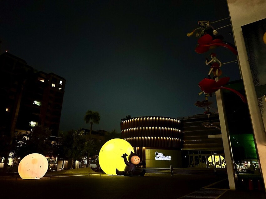 於新營文化中心廣場重現幾米繪本《月亮忘記了》經典場景,希望透過作品傳達溫暖,點亮觀賞者的心靈。