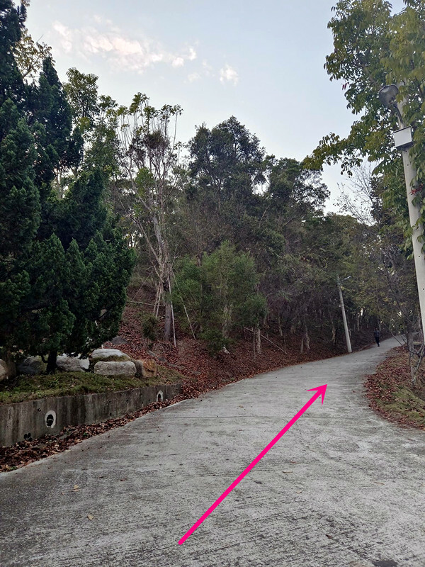 入口就在此處,從這個斜坡往上走約5分鐘就能看到叉路口的路牌