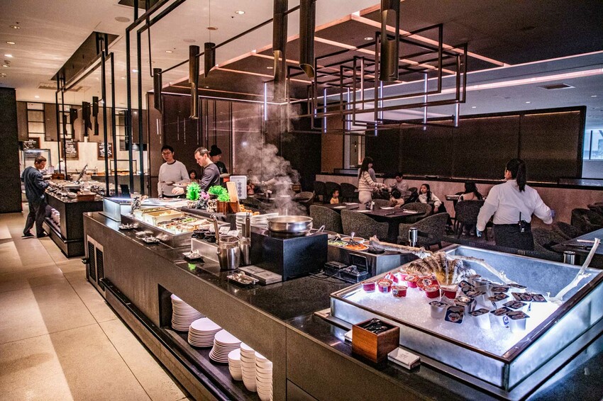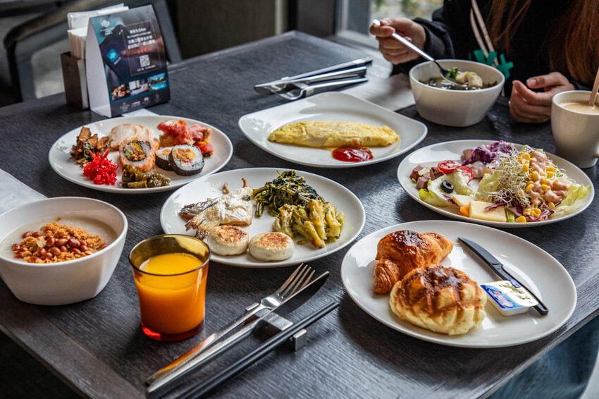 礁溪寒沐酒店的早餐是採自助式的自助餐,提供多達百道餐點無限吃到飽,包含中、西、日式各種餐點無限吃到飽