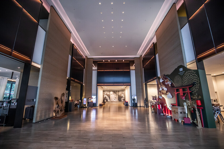 走進礁溪寒沐酒店的大廳,礁溪寒沐酒店挑高的大廳寬敞氣派,大廳裡還有木雕、畫作等,將藝術氛圍融進空間之中,也會根據不同的活動或節慶佈置符合的裝置藝術