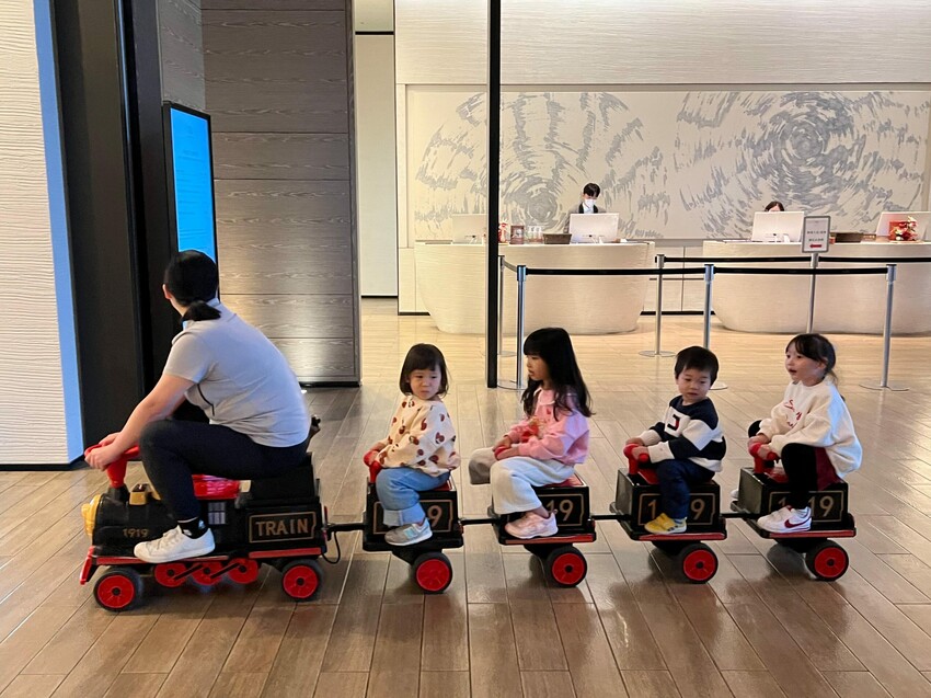 一樓的走廊上還鋪設了可愛的小馬路,提供小朋友們駕駛電動車的獨特體驗,然後還有超可愛的小火車,車長會開著小火車繞大廳一圈,超有趣的啦,重點是這些設施房客都可以免費玩啦