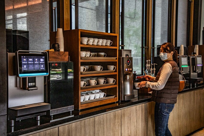 桌上還有擺放許多迎賓小點心,冰箱裡的飲料還有膠囊咖啡也是免費供應