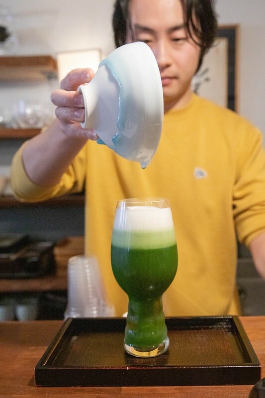 直接手涮抹茶。第二次來,自覺跟老闆熟了,要求錄影他也欣然同意,於是有了他現點現涮茶的影片。正格的,他涮茶的時候真是滿室生香。