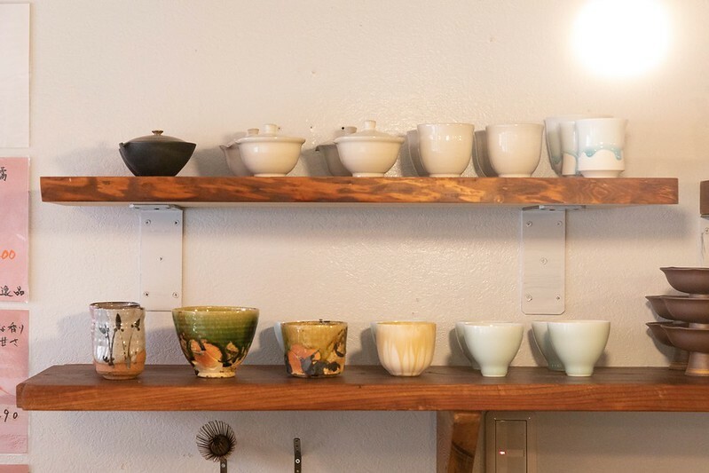 除了內用的好茶外,這裡也有日本各地的茶可以外帶,甚至有中國、台灣的茶葉,店裡有用到的味噌、醬油等食材看起來都是各地的名物,包含杯子、盤子等容器也有自己的喜好和堅持;好奇和老闆小聊,要是我沒理解錯,他也是若櫻的人,返鄉後想在若櫻打嚮在地的茶飲品牌,期望可以為自己的故鄉做一點事。