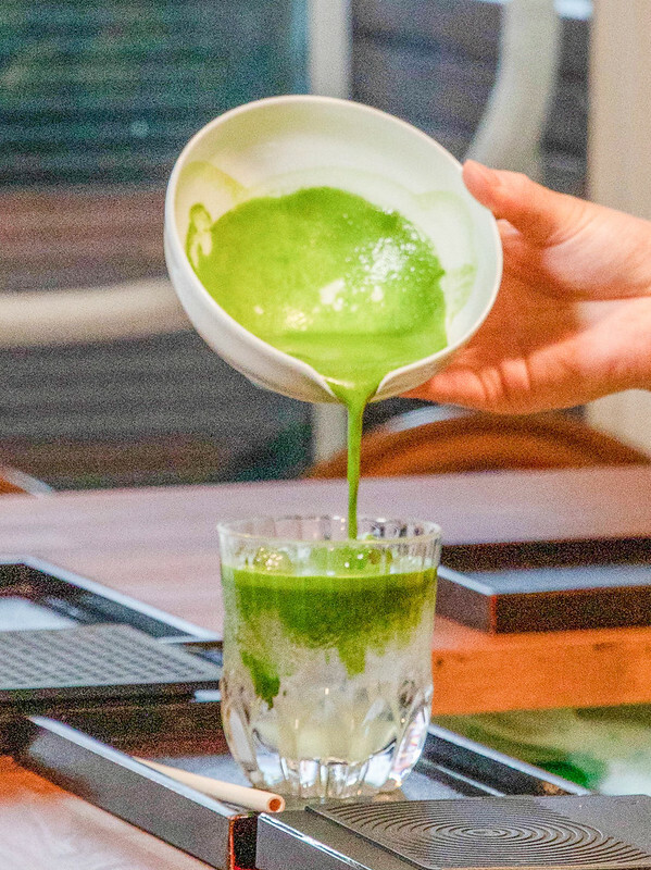 這杯是一訪時店主人為山根伸志先生沖的冰抹茶拿鐵,價位上依據使用不同的抹茶粉若有不同。