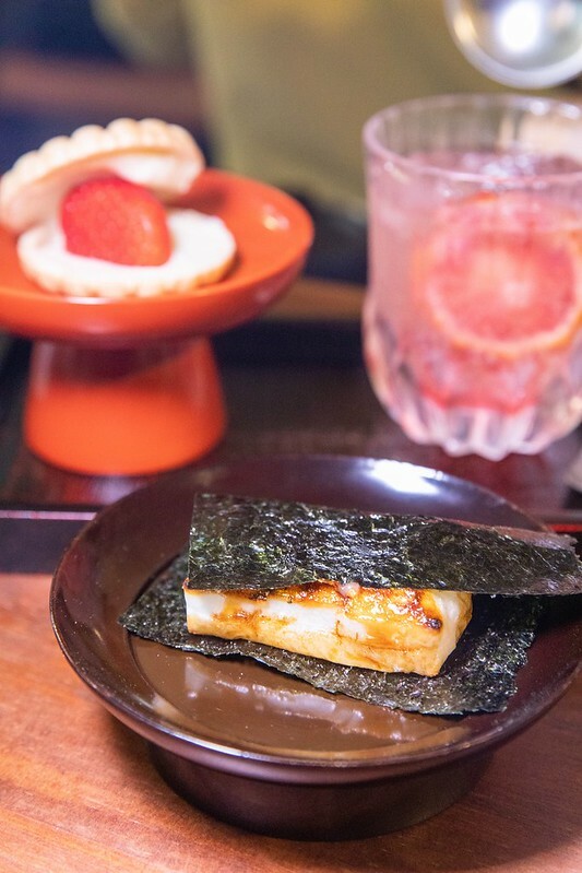 可能是因為海苔有現烤,吃起來有著較多的存在感,除了酥脆的口感外,也能嚐出多一點海苔的香氣,且半點不輸醬油香,烤過的年賤外表酥脆,裡面Q軟略為粘口,醬油的鹹香是重點中的重點,香到不行。