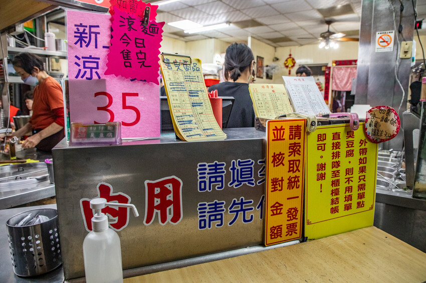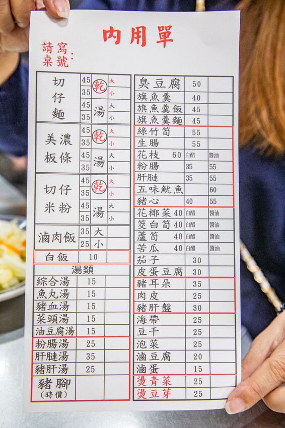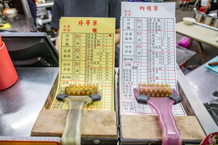 興加臭豆腐要先自己找座位坐再去填單結帳,菜單有分外帶跟內用的不要拿錯唷,看了一下菜單認真說有夠便宜的!臭豆腐才50元,切仔麵小碗的才35元,湯類有些還15元,重點他有開發票唷