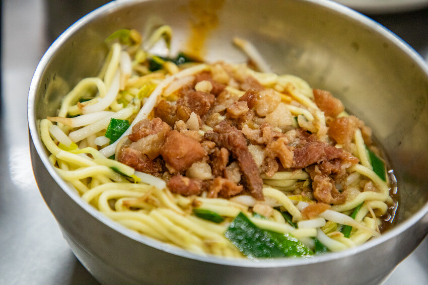 切仔麵(乾),這是小碗?!一開始想說會不會送錯,沒有到這真的是小碗,份量真的很多,麵體是用油麵,上面淋上大量的肉燥,聞起來有肉燥香氣超級誘人的!