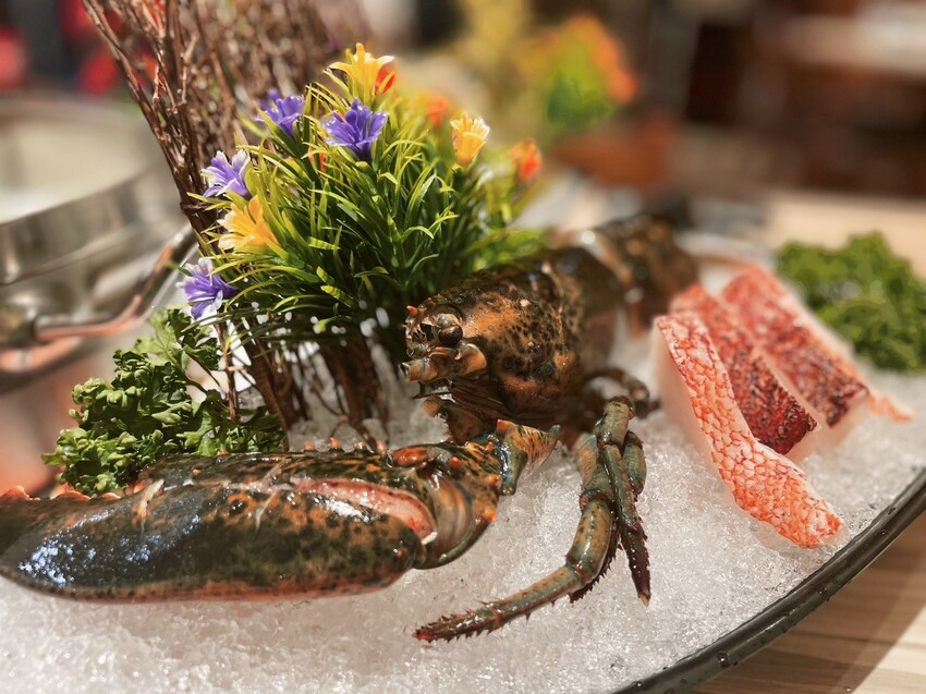 日本A5和牛、台灣松阪豬、波士頓龍蝦、紅條石斑魚、大草蝦、蛤蜊、大扇貝及綜合菜盤等