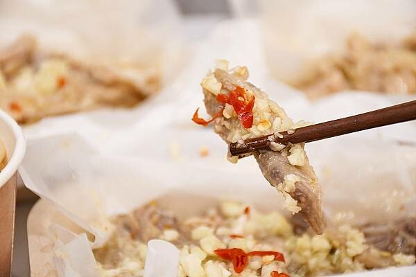 雞翅尖與蒜頭一起吃,蒜頭的脆、雞翅尖的細嫩,打造層次度