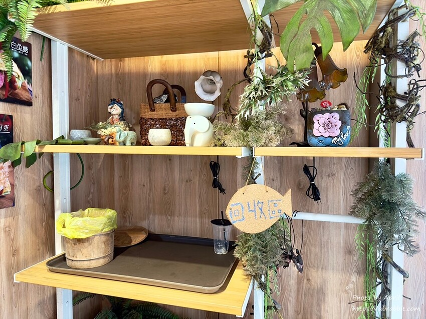 櫃檯的左右邊也很有一些可愛的設計,左邊貼滿餐食的照片,令人垂涎!右邊則是放了很多可愛小物,還有餐盤回收區。