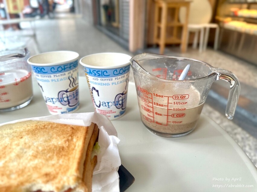 讓我特別驚豔的是店家的奶茶,因為我們內用的關係,老闆直接把料理杯子端出來,說怕倒入紙杯會太滿,這樣比較好喝XD 分層的胚芽,可以看得到它胚芽真的超多,而且是店家自己手工炒的,很香!薑汁奶茶的香氣也很讚,因為用老薑去熬煮,所以薑味十足,喝起來超暖胃!兩款飲品我都超愛。