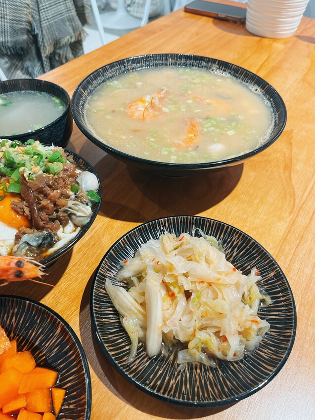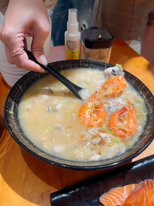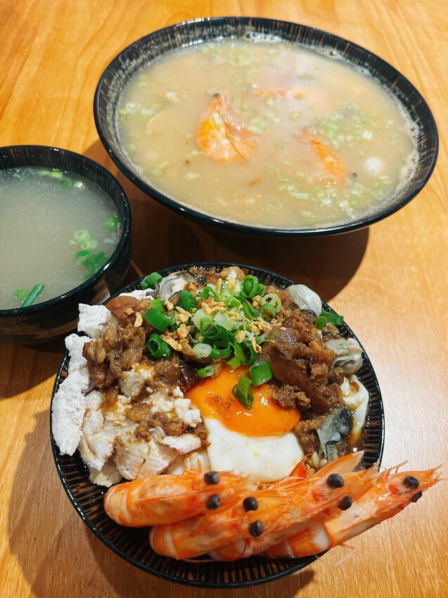 蝦子、鮮柯、虱目魚皮、虱目魚肉、蛤蜊等,結合店家秘製的粥底