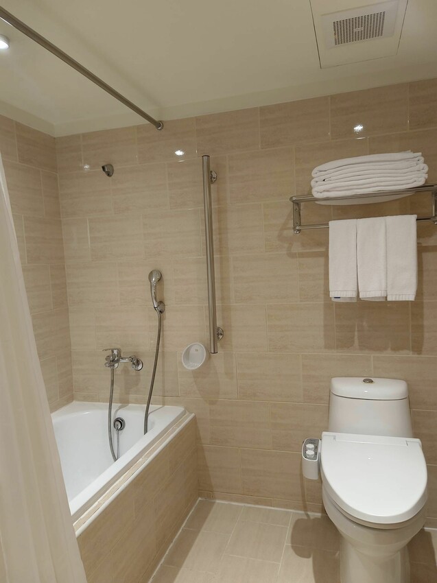 洗手間雖然面積不大,但也有浴缸和免治馬桶,對我而言這二項恰恰是最重要的,出門在外就是要住得舒適,房內有浴缸和免治馬桶就很加分
