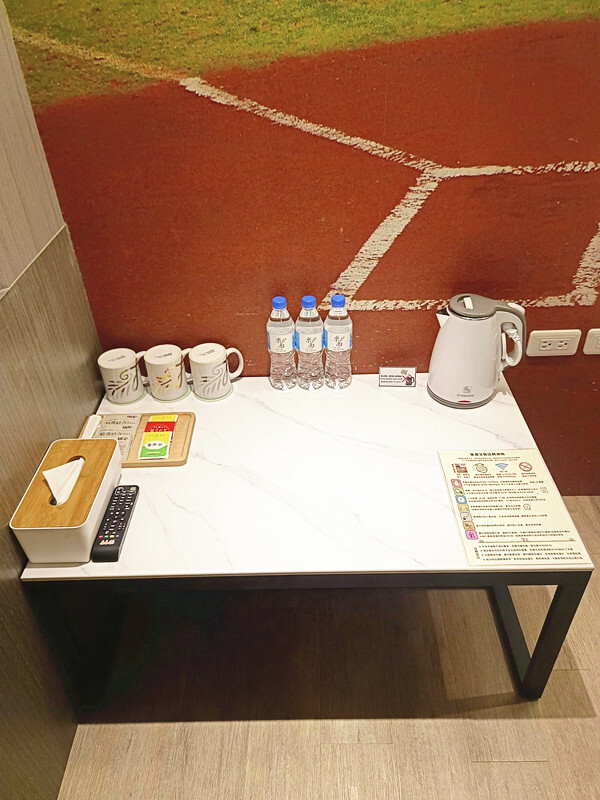 樂逸文旅不愧是棒球主題旅館,就連櫃檯前都擺滿了球棒和本壘包,喜歡棒球的人一踏進來就會有滿滿的熟悉感,這種徹頭徹尾呼應棒球主題的設計應該是全台唯一了吧?