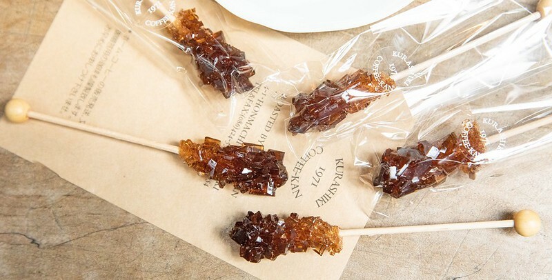 琥珀糖?這個像是水晶的糖棒是挑曲奇時看到的,因為太漂亮忍不住買了,感覺上是用日式喫茶店常見的咖啡糖做成的,剛好符合店家的招牌「琥珀女王」,可以依自己的喜好在咖啡或是飲料中攪伴,也可以騙小孩當棒棒糖?