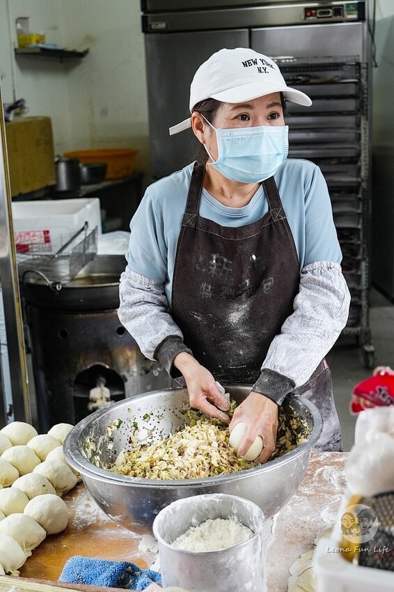 剛好看到這間新社特製水煎包店前滿滿都是人潮,