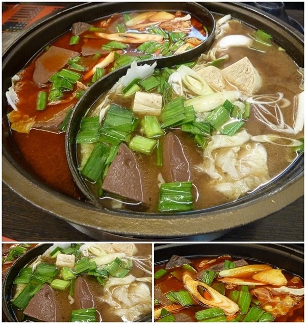 湯頭濃郁不說~ 整鍋滿滿的鴨血, 凍豆腐, 青菜與蒜苗~
