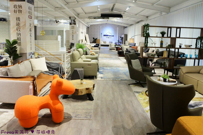 二樓以客廳、餐廳、茶几、沙發、單椅為主要商品.