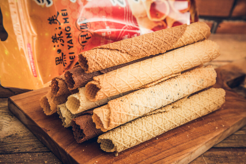 黑漾美日式手工蛋捲餅外觀看起來雖然像蛋捲一樣,但吃起來口感完全不同,比較接近很酥的煎餅,而且他是有厚度的那種,口感十足,口味也是走清爽路線,而且完全不會甜膩,因為純手工做的,大小長度都不一樣,但整體來說還是很好吃的蛋捲餅,可以買