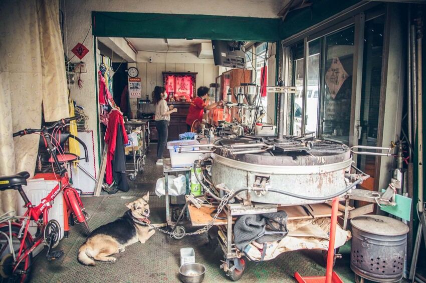 竟然在北部也能看到老古董煎餅機ㄟ,之前只有在台南連得堂煎餅有看過,北部倒是第一次見到,現在這台傳統煎餅機還是有在運作,只是今天來的時候老闆娘正在吃午餐,煎餅機還沒開始烤