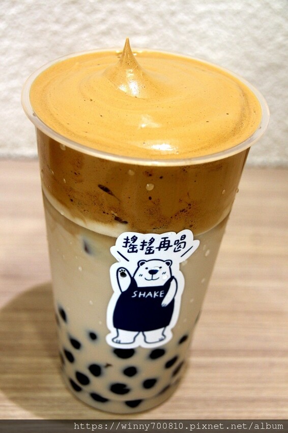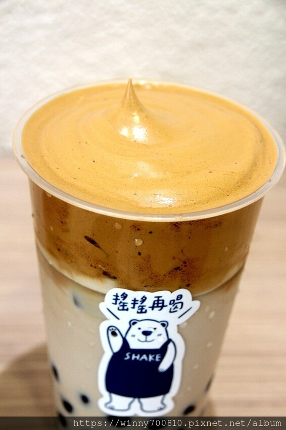 打發而成的咖啡奶泡,基底搭配珍珠奶茶,喝起來有著咖啡碳燒香,