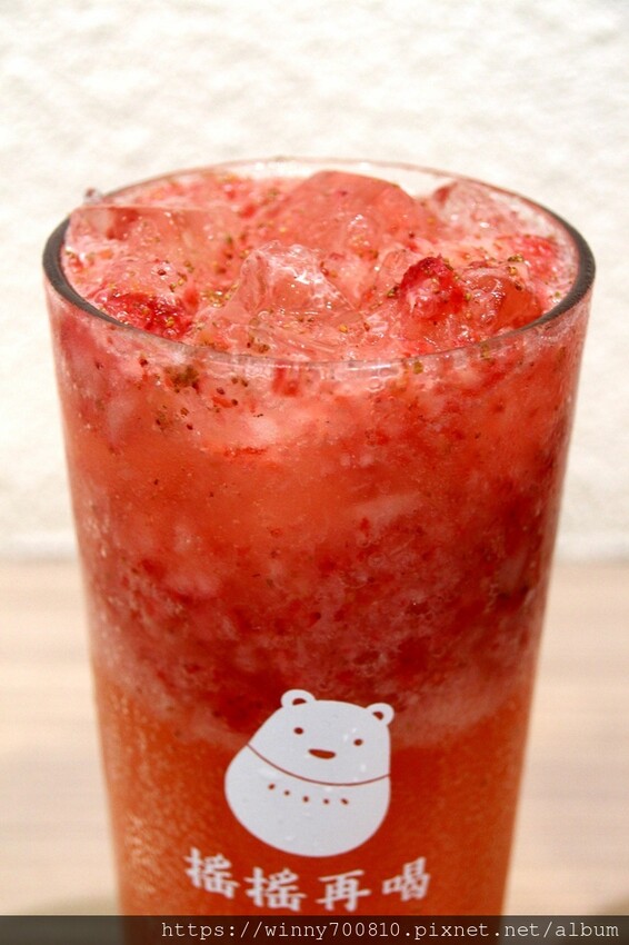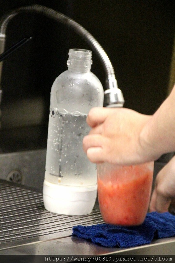 搭配檸檬氣泡水,咬得到草莓果肉還有沁涼的冰沙口感,
