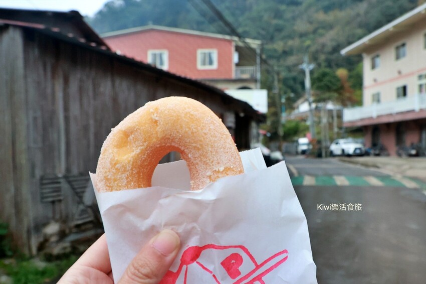 帶著很Q的甜甜圈,幸好沒有油味否則開車下山,我想我應該會把持不住都還給大自然了~小米甜甜圈很棒,來到新光部落必吃小食,一塊35元覺得還挺便宜,一口咬下糖霜、裡頭的Q軟Q軟,幸福滋味油然而生!接著就往