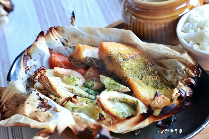 這款餐點讓我很訝異,紙包海鮮加上青醬是個很棒的餐點~簡單卻是可以吃得很飽~