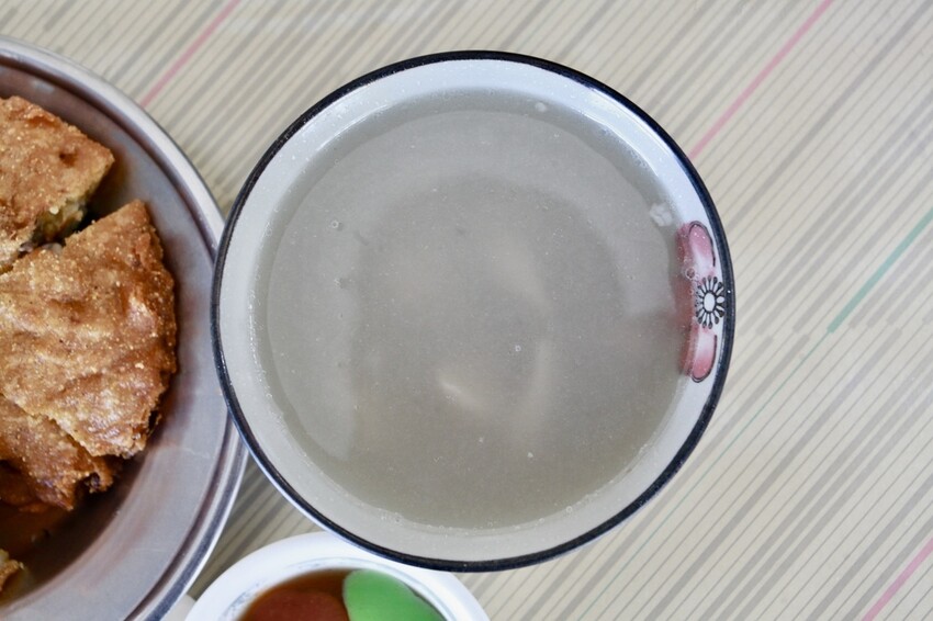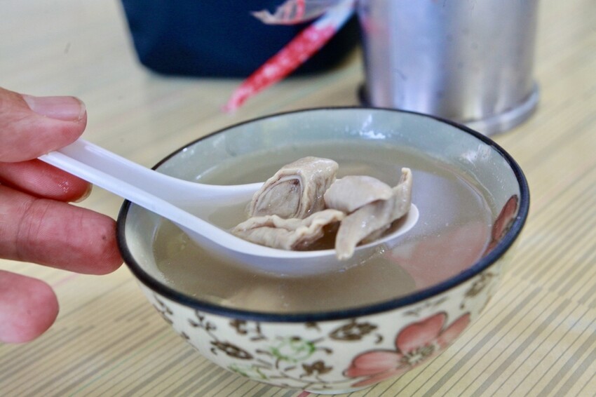 這四神湯湯頭中藥滋味濃厚爽口好喝,腸子處理很乾淨軟Q真好吃