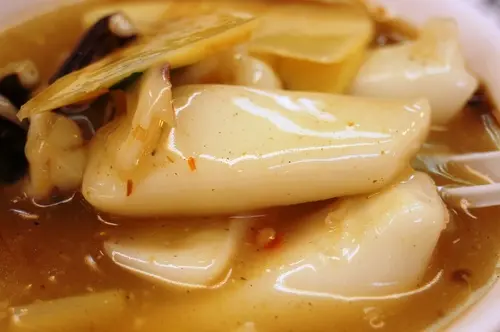 搭配燉煮的非常軟爛的紅、白蘿蔔與QQ的蒟蒻條,口感層次搭配豐富。