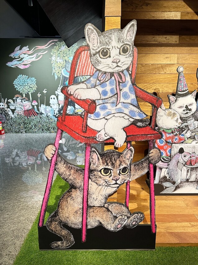 以下半身為八爪腳的貓咪為主體,環繞著長著翅膀的兔子、有美人魚尾巴與天使翅膀的貓咪、有眼睛的植物以及更多爬蟲類、不知名生物等,乍看之下似乎詭譎怪異,卻又透露著超現實的樂趣;而六張票圖則與主視覺復古的色調不同,樋口裕子解釋:「我畫的是經常出現在我的繪本、作品中的孩子們,和熟悉的動物們。而通常只在日本的他們和她們,這次穿上可愛的衣服,並說著『來吧!我要去臺灣了!』」彷彿能從樋口裕子所繪製的新圖中,看出創作者對於這次移展台灣感到相當新鮮與期待呢!