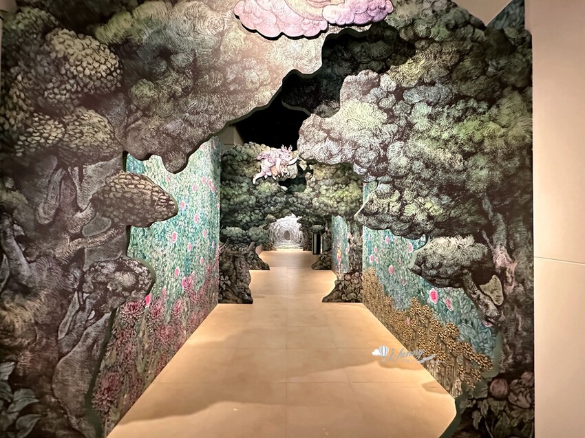 雖然森林入口帶點怪奇詭異的氣息,但展覽廳裡卻設置出鮮豔色澤,令人掉入童話般的情境裡。
