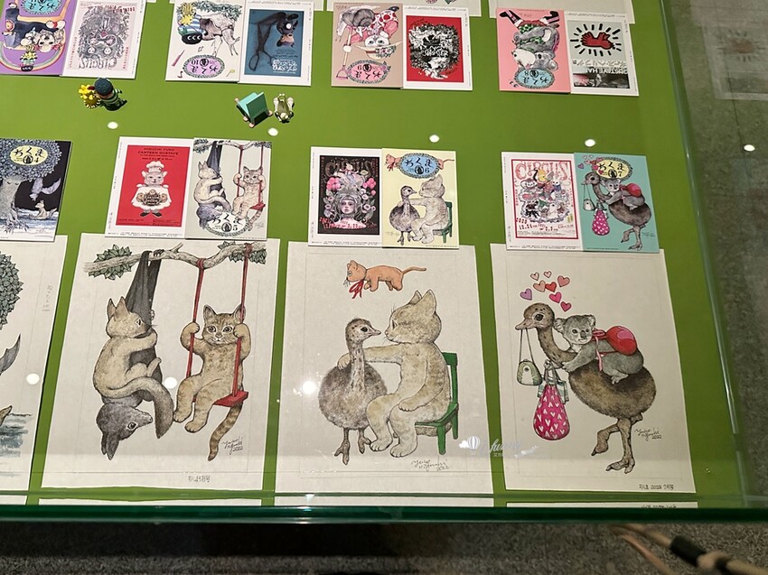 這區玻璃櫃裡展示的是, 至今曾發行製作的知名著作原畫手稿,從故事主題介紹到內頁圖文設計,逐一完整呈現,深入欣賞樋口裕子老師多年創作生涯中經典作品。有描繪貓咪玩偶與動物們之間交流的「貓咪系列」、精緻小巧更富含豐沛情感的圖文集《小情書》、頑皮惹人愛的奇妙角色物語《GUSTAVE君》⋯等。