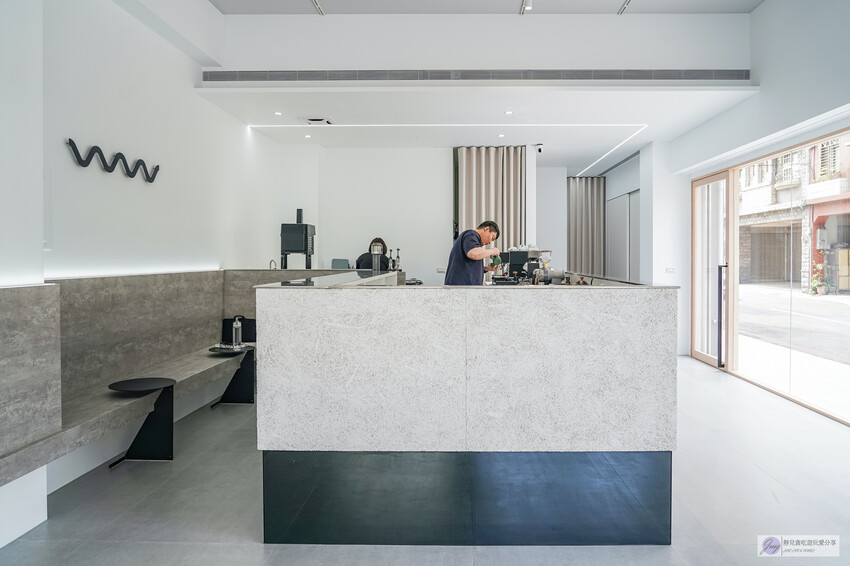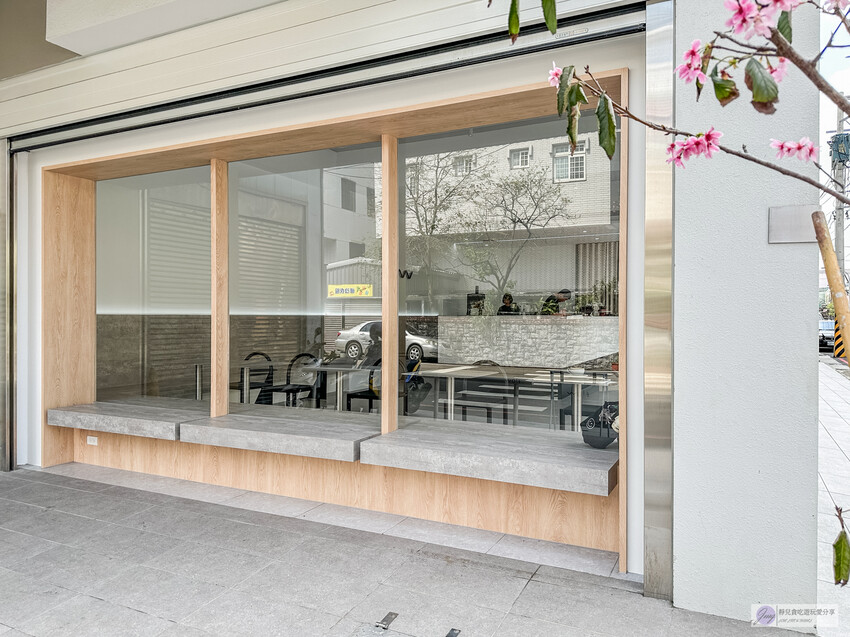 整棟純白色的建築相當顯眼吸睛,路過都會被這棟建築給吸引,好奇這棟是賣什麼的,木質窗框搭配簡約LOGO,光是戶外就相當好拍美照
