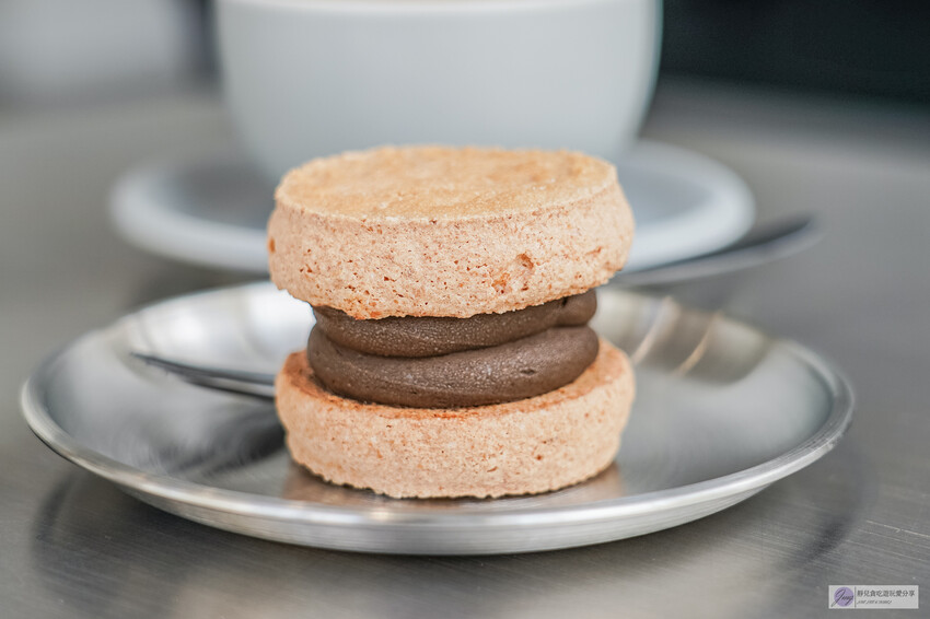 達克瓦茲也很優秀,微酥鬆的口感,搭配中間夾層內餡的櫻花焙茶雪鹽,夾層內餡帶有鹹味與焙茶的茶香,降低了達克瓦茲的甜,整體吃起來甜度不會太高,還有著豐富層次口感