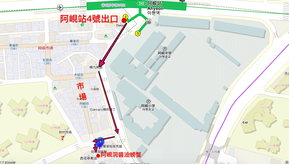 位於2號線(242)阿峴站,這次住在明洞,從乙支路入口站坐過去,從四號出口出來,走到第三個路口右轉再右轉寄到了,也可以從中間的市場一路逛過去。