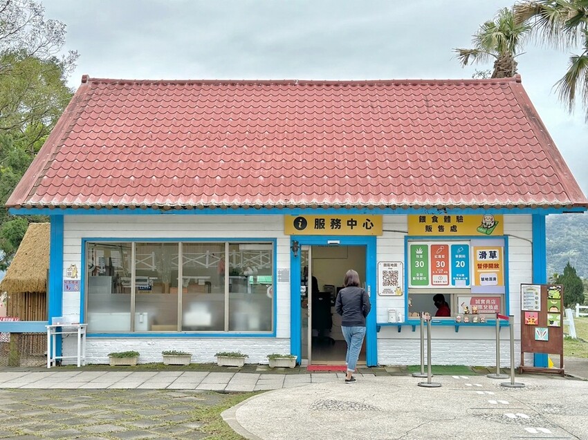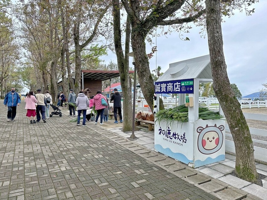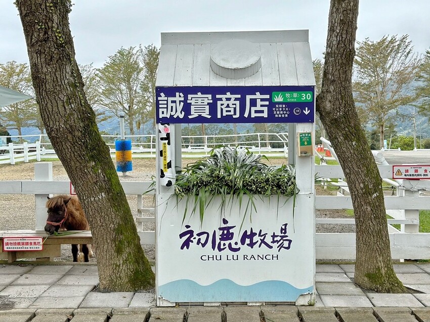一停好車就看到動物區可以餵食牧草,一旁設有誠實商店,自行投幣拿卡片到服務中心兌換發票。