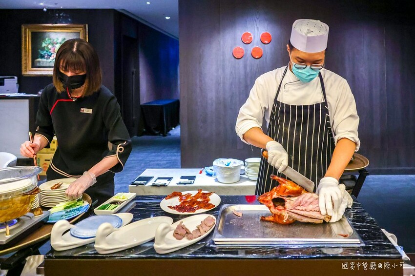 台北烤鴨餐廳推薦「國賓中餐廳」,朋友預訂捷運南京復興站國賓中餐廳一鴨三吃,川菜與精緻粵菜料理結合的中式餐廳適合聚餐推薦,國賓中餐廳烤鴨好吃嗎?