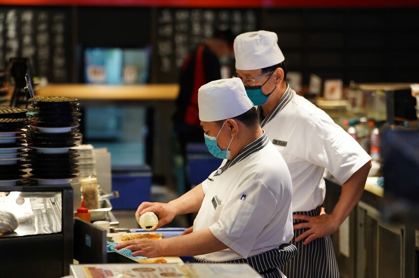 吧台內的師傅正忙著處理各種食材,務必要把最新鮮的美食呈現在顧客面前,畢竟日式料理最講究的就是這種一生懸命的職人精神👍