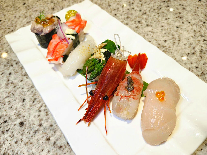 高級食材用料不手軟的美式壽司捲,可以吃得到海膽,帝王蟹,和牛,鮭魚卵和甘貝等,不僅配色好看,吃起來更是可口,一次點好點滿極上盛合,每種口味就都能吃得到喔!